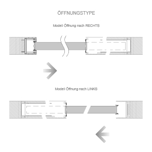Schiebetüre mit beidseitig wandbündigem unsichtbarem Rahmen. Ein neuartiges Führungssystem erlaubt es, alle Montage- und Einstellungsarbeiten nach Einbau des Rahmens und ohne jegliche Revisionsöffnungen auszuführen. Das hochwertige Türblatt kann so nach Abschluss aller Bauarbeiten ohne Beschädigungsrisiko eingebaut werden.