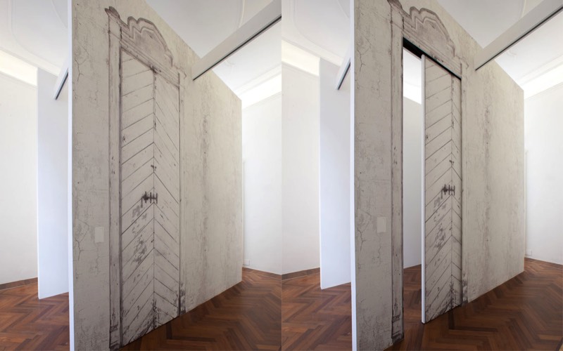 Mit einem Türblatt in einer Stärke von 10 cm, wie die Stärke der Mauer, ist L’Invisibile Drehflügeltür Filo 10 die erste, auf beiden Seiten vollkommene wandbündige Tür. Dank eines ausgeklügelten Systems versenkter Drehzapfen kann sich die Tür mit unterschiedlichen Öffnungswinkeln um ihre vertikale Achse drehen und bietet mit ihrer Bewegung einen spektakulären Anblick. Eine Weiterentwicklung der Drehflügeltür, ist Filo 10 in allen Größen und mit allen Verkleidungen möglich, mit denen die Tür sich harmonisch in jede Umgebung einfügt und dank der völligen Flächenbündigkeit zwischen Tür und Wand unsichtbar wird.